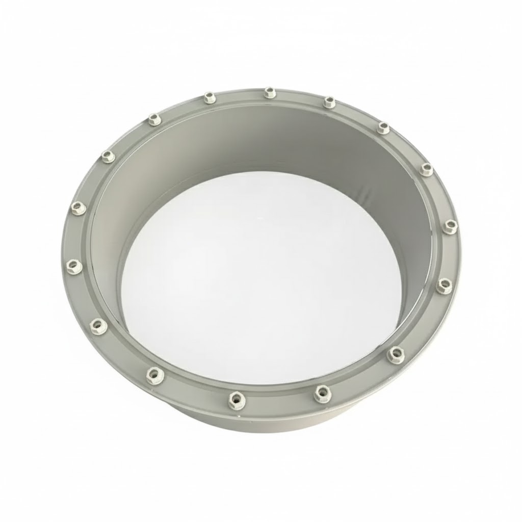 Kết nối: Sản phẩm có cấu trúc Mặt bích (Flange) hình tròn, với nhiều lỗ bu-lông bố trí xung quanh vành. Điều này đảm bảo việc lắp đặt chắc chắn và kín khít với thành thiết bị.