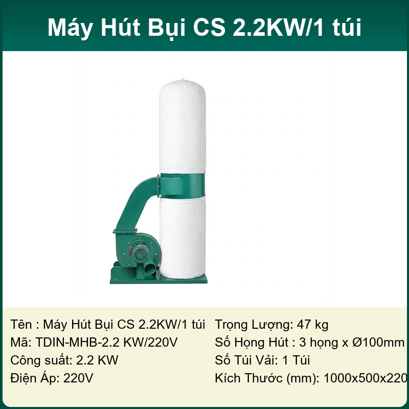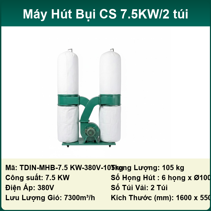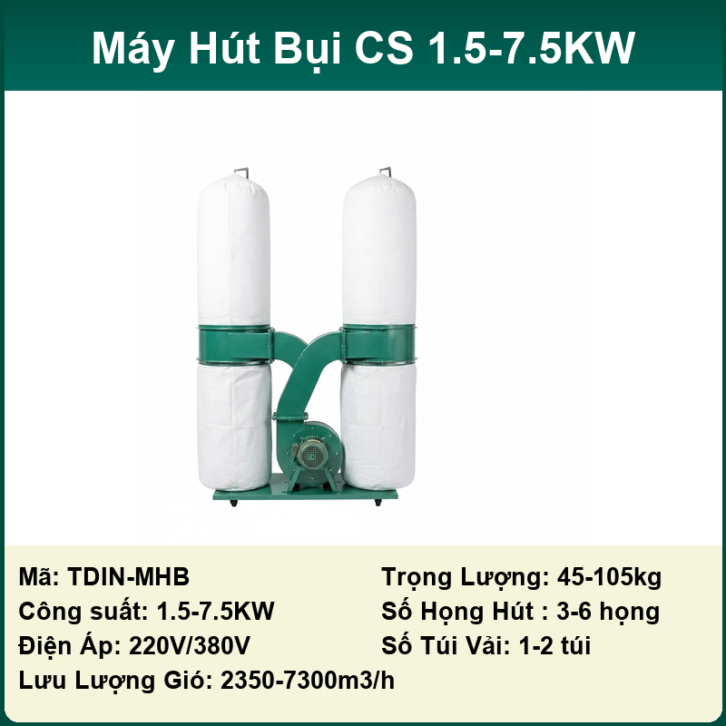 Lực hút cực mạnh: Với thiết kế quạt ly tâm và buồng hút tối ưu, máy tạo ra lưu lượng gió lớn (từ 2350m³/h đến 7300m³/h), dễ dàng thu gom các loại bụi nặng như dăm bào, mùn cưa, bụi chà nhám…