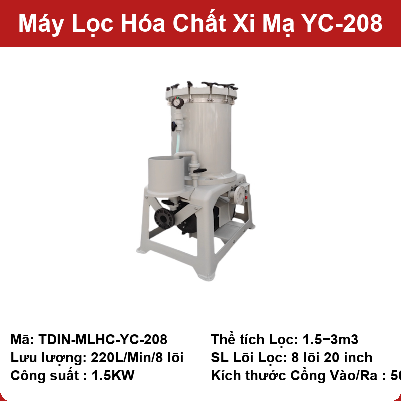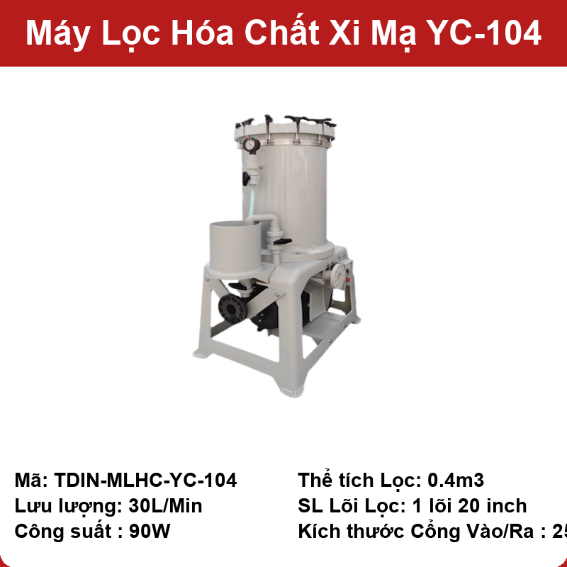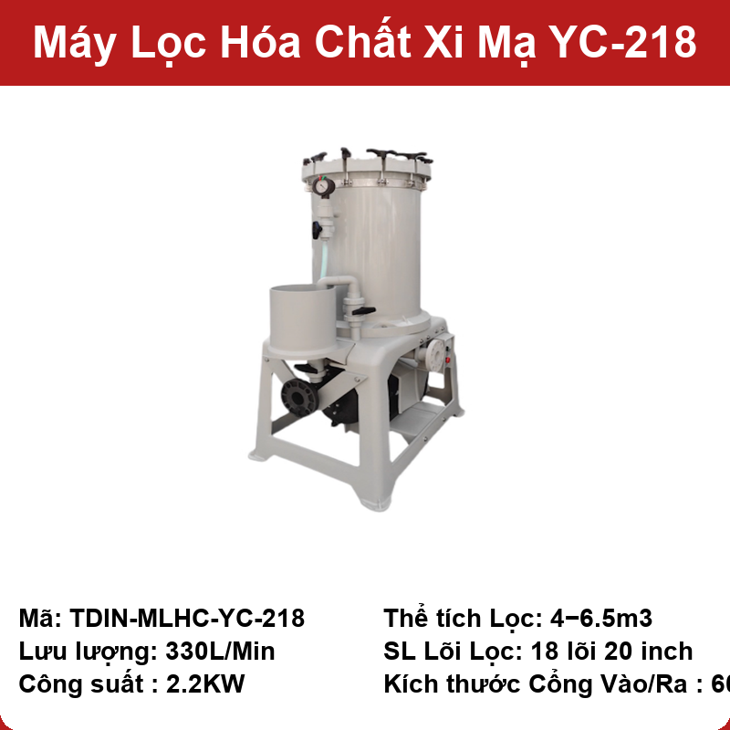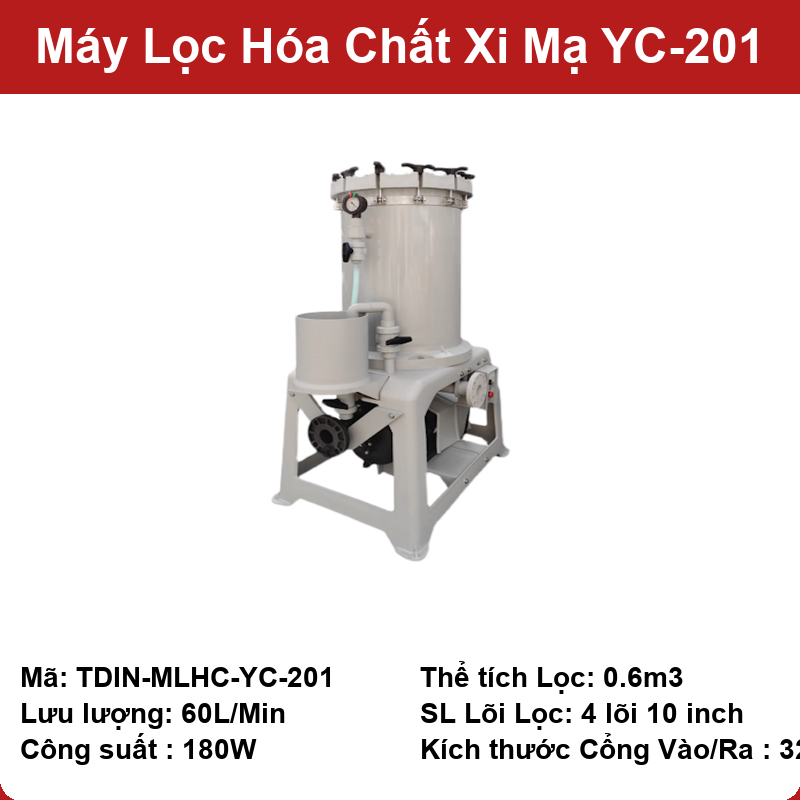 Máy lọc hóa chất Series YC là giải pháp tối ưu dành cho các dây chuyền xi mạ và xử lý nước thải công nghiệp. Với thiết kế thân nhựa PP/PVDF đúc nguyên khối siêu bền, thiết bị giải quyết triệt để vấn đề rò rỉ hóa chất và ăn mòn thiết bị, đồng thời lọc sạch các tạp chất siêu nhỏ, giúp sản phẩm xi mạ đạt độ bóng đẹp hoàn hảo, không bị lỗi gai hay sần sùi.